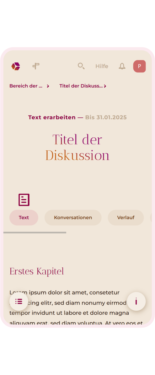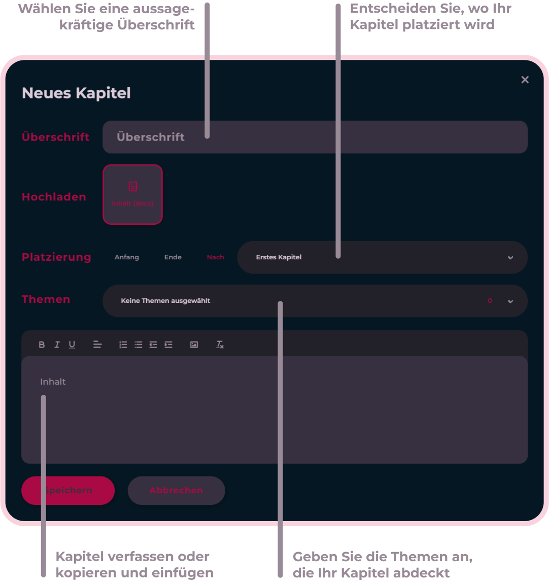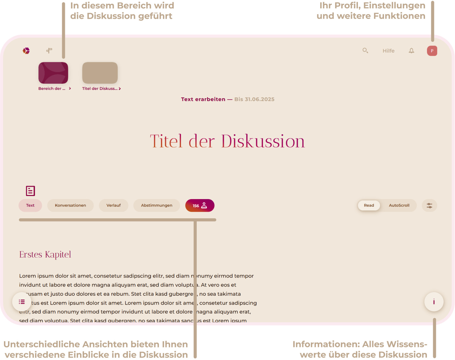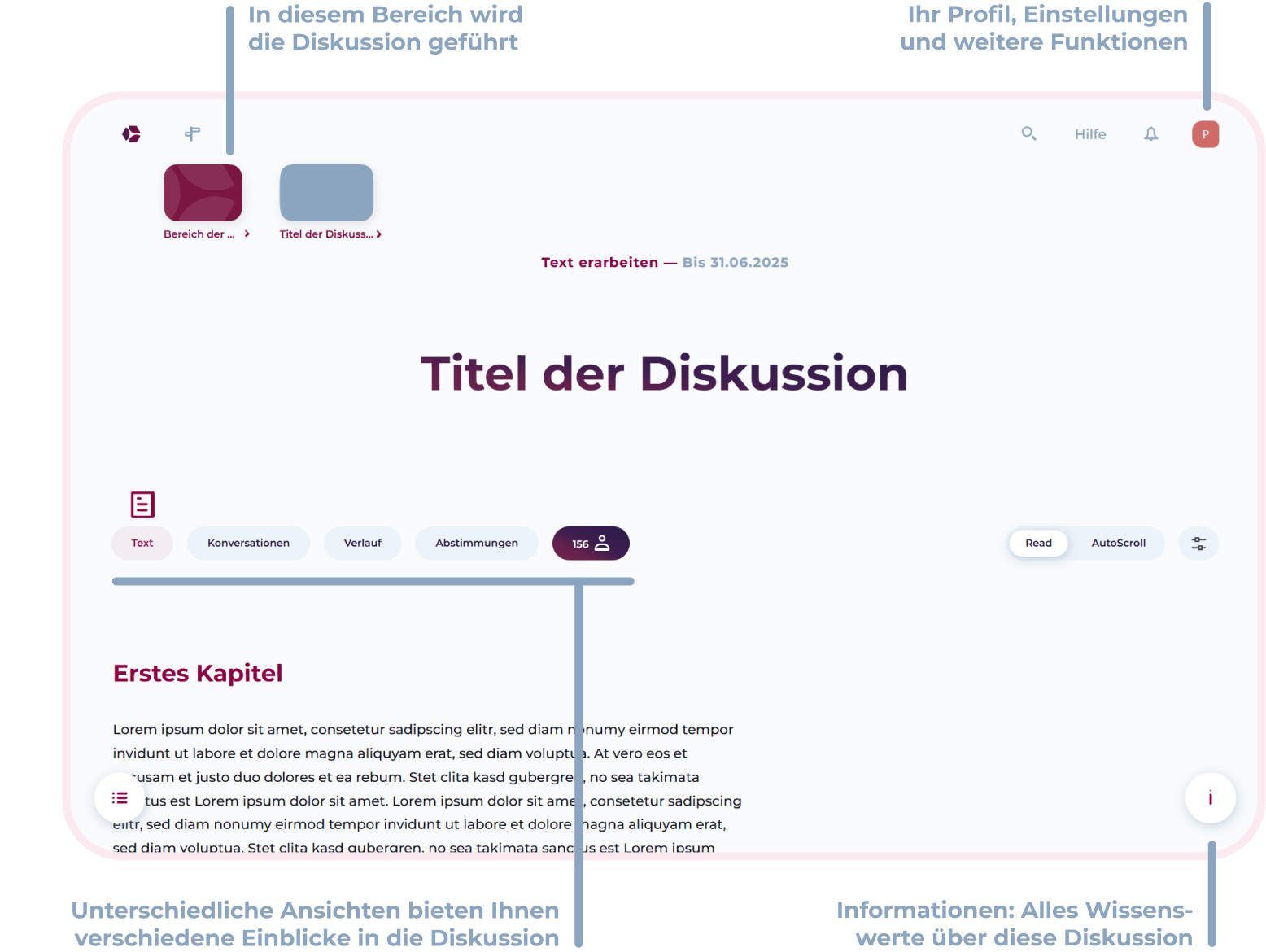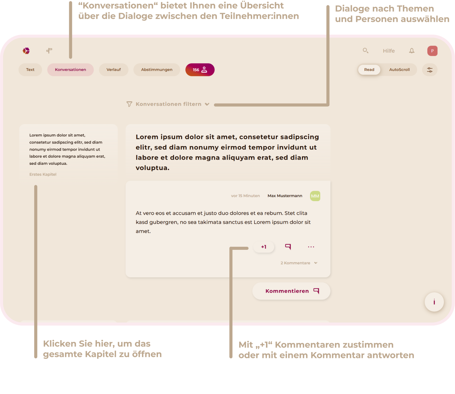 Hier erfahren Sie, wie Sie sich zurechtfinden, eigene Kapitel verfassen, Kommentare lesen und schreiben sowie aktiv mit anderen diskutieren können.