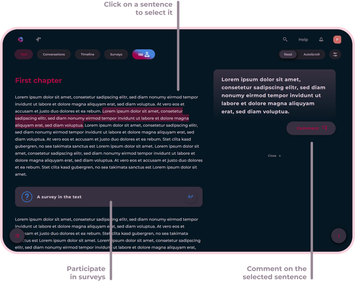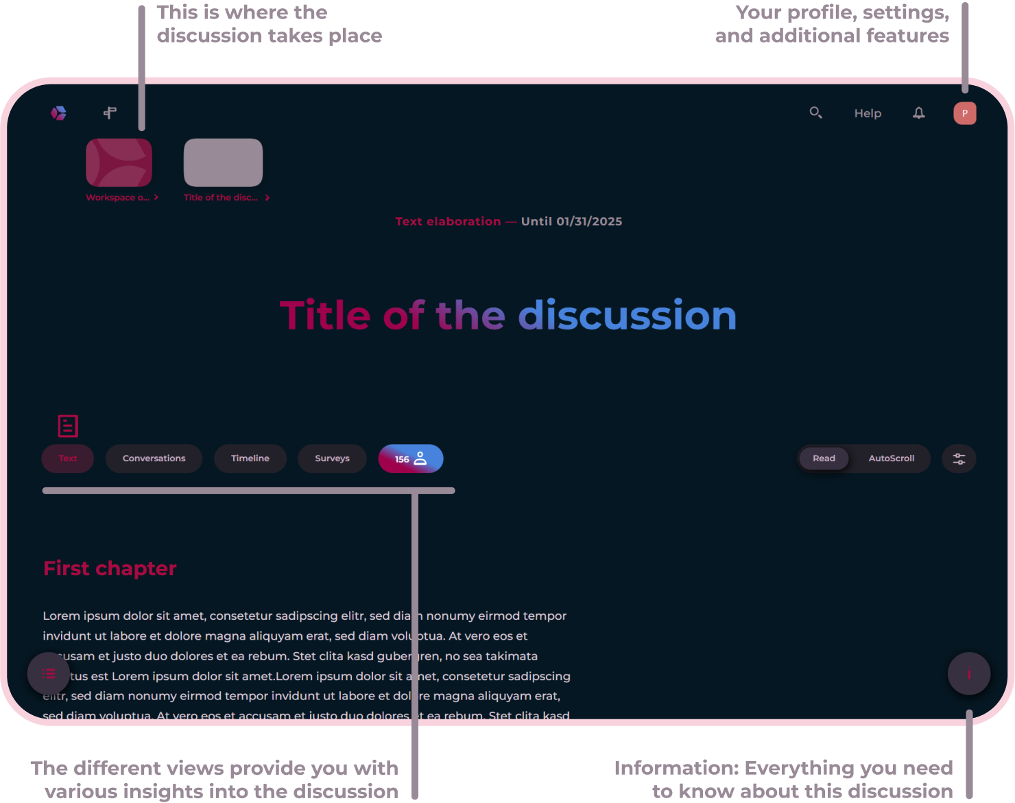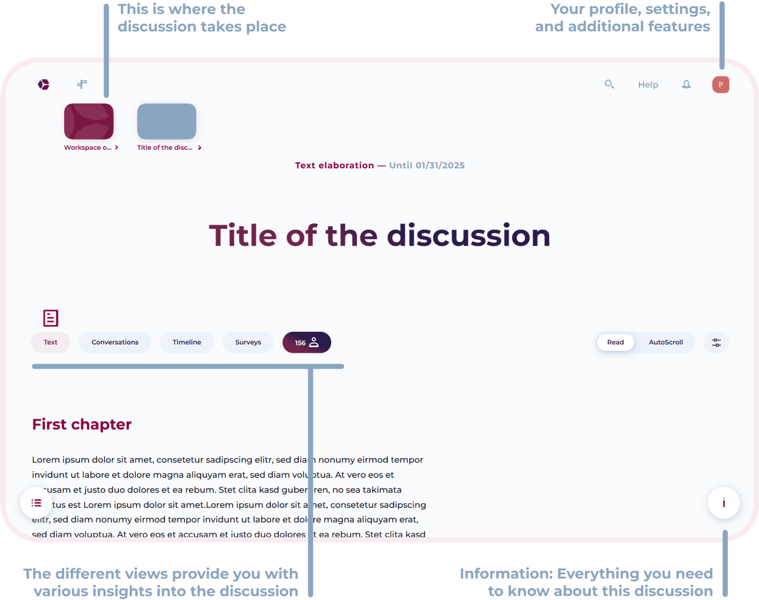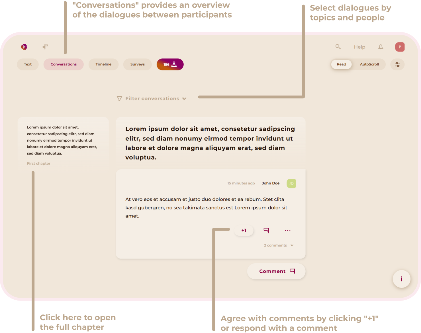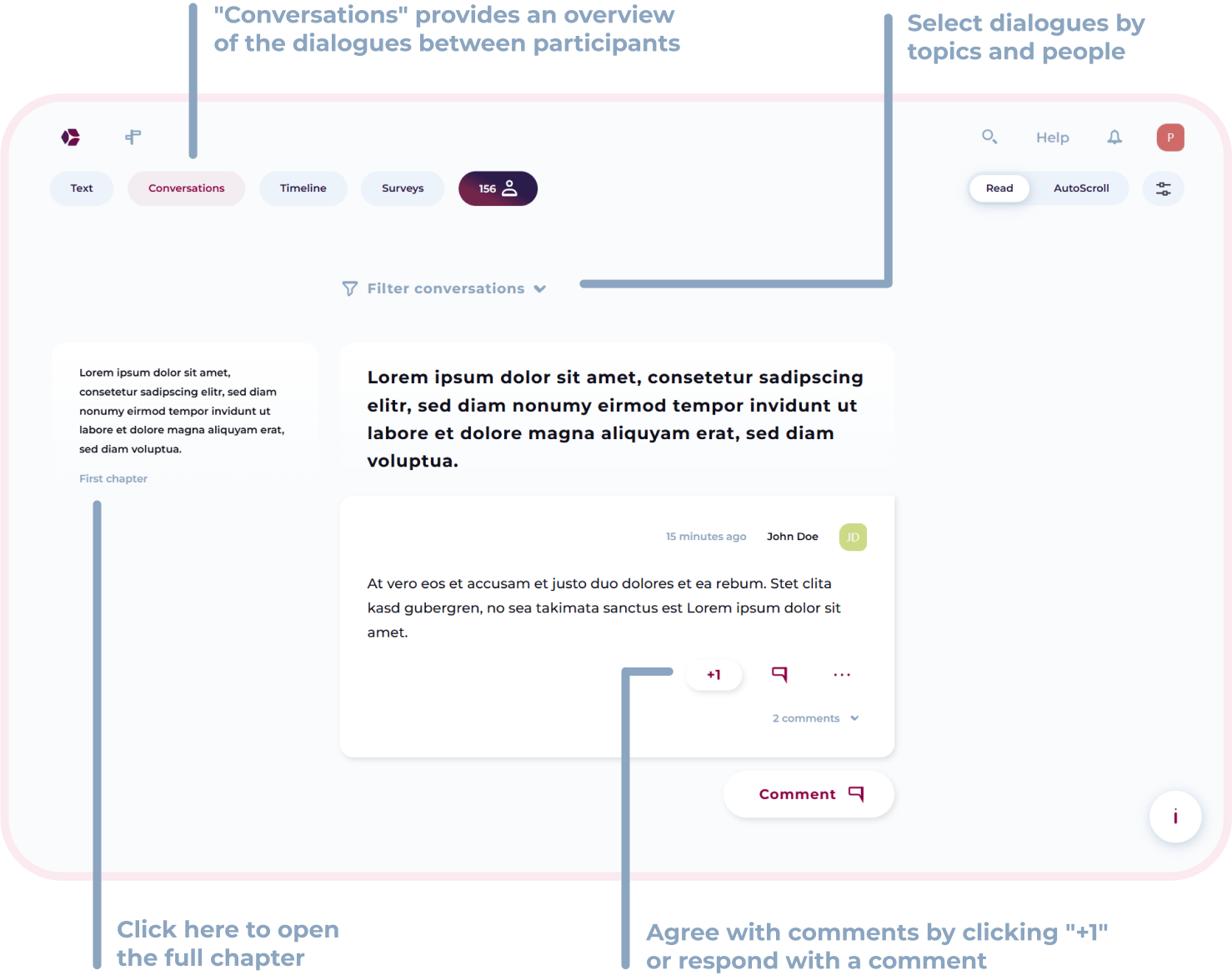 Here you will learn how to navigate, write your own chapters, read and write comments, and actively engage in discussions with others.
