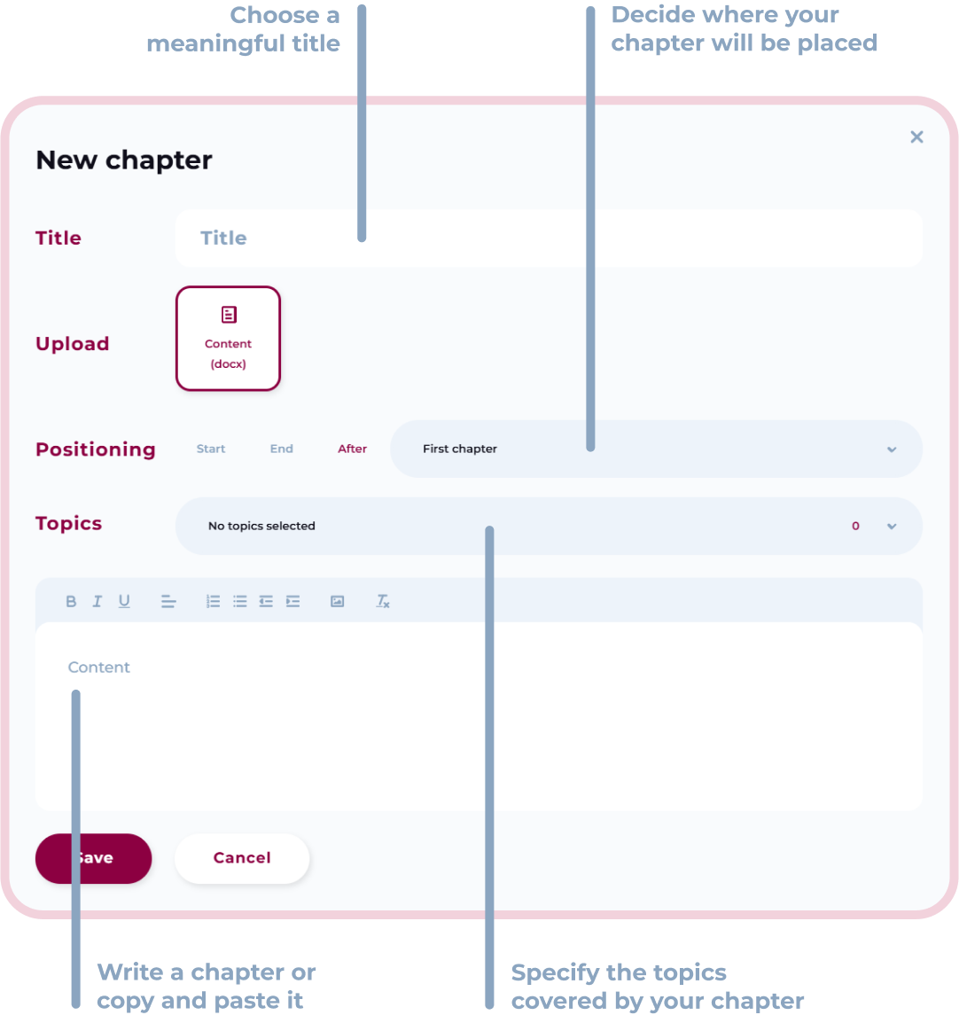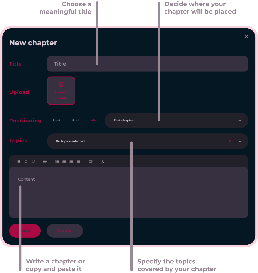 2. Read chapters and add new ones